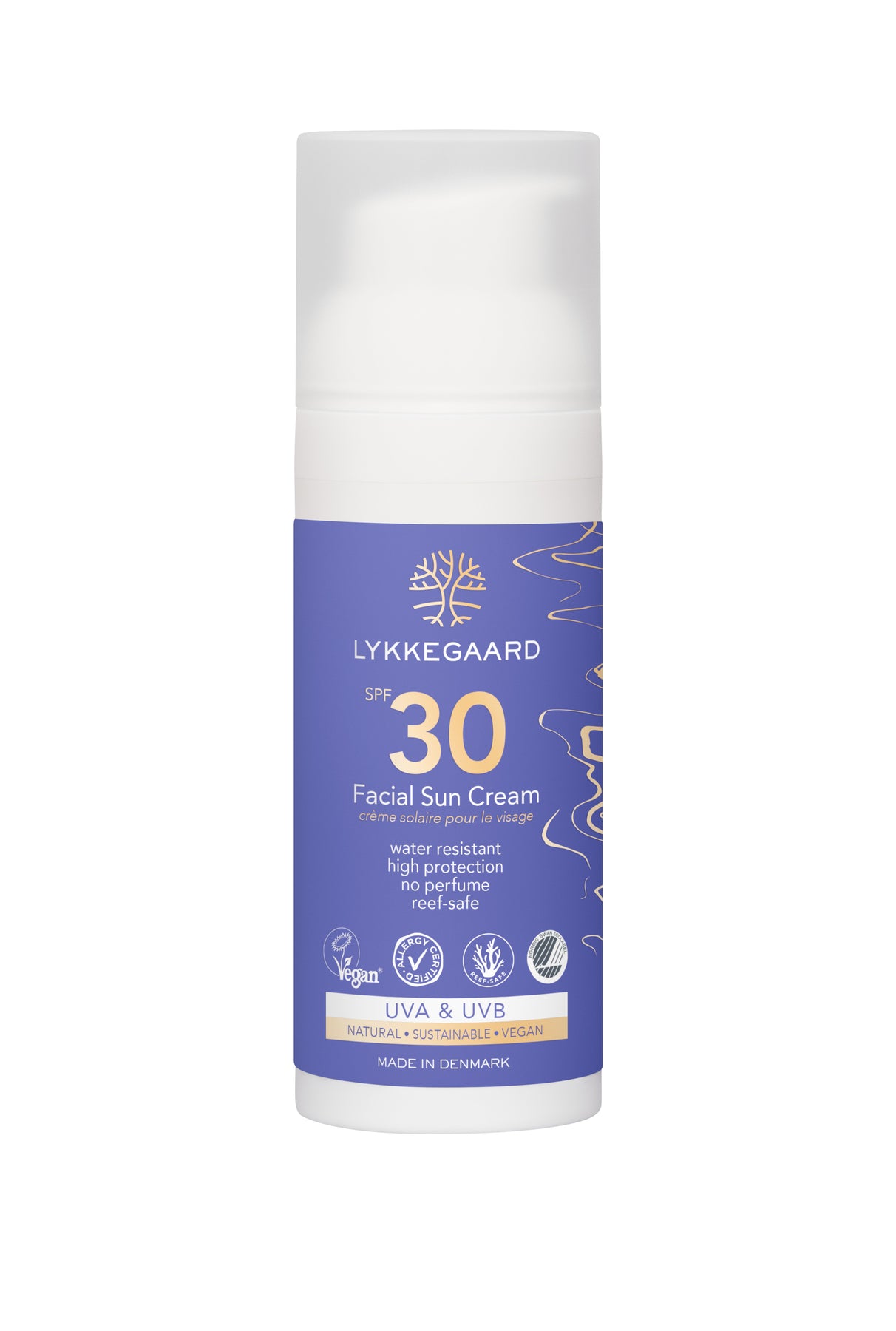 LYKKEGAARD SPF30 Facial Sun Cream protects your skin from harmful UV rays – both UVA and UVB rays. LYKKEGAARD SPF30. Facial Sun Cream is a chemical absorber and contains certified natural and organic ingredients such as Cucumber Extract which has a cooling effect on the skin.