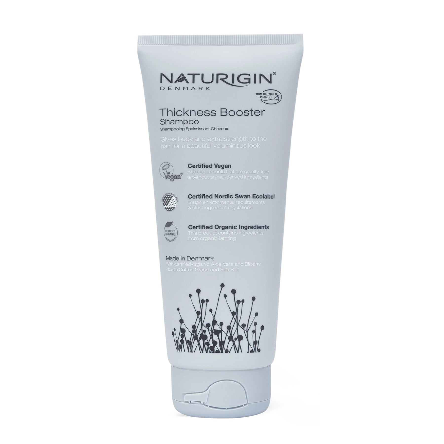 With Dead Sea Salt and certified organic Nordic Cotton grass, Aloe Vera, and Bilberry.