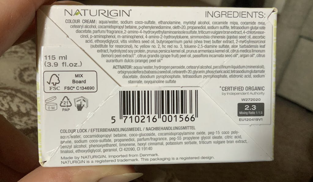 NATURIGIN hair colours are a permanent solution and cover grey hair up to 100%. The colour is easy to apply and it only takes 30-45 minutes. The hair colours have a professional quality and work for all hair types. Inside a NATURIGIN hair colour box is 60 ml. ‘Activator’, 40 ml. ‘Colour Cream’, safety gloves and last but not least 15 ml. ‘After Colour Treatment’, which makes the colour last longer. NATURIGIN hair colour is 100% ammonia, SLS and paraben-free and therefore has a mild and pleasant fragrance.