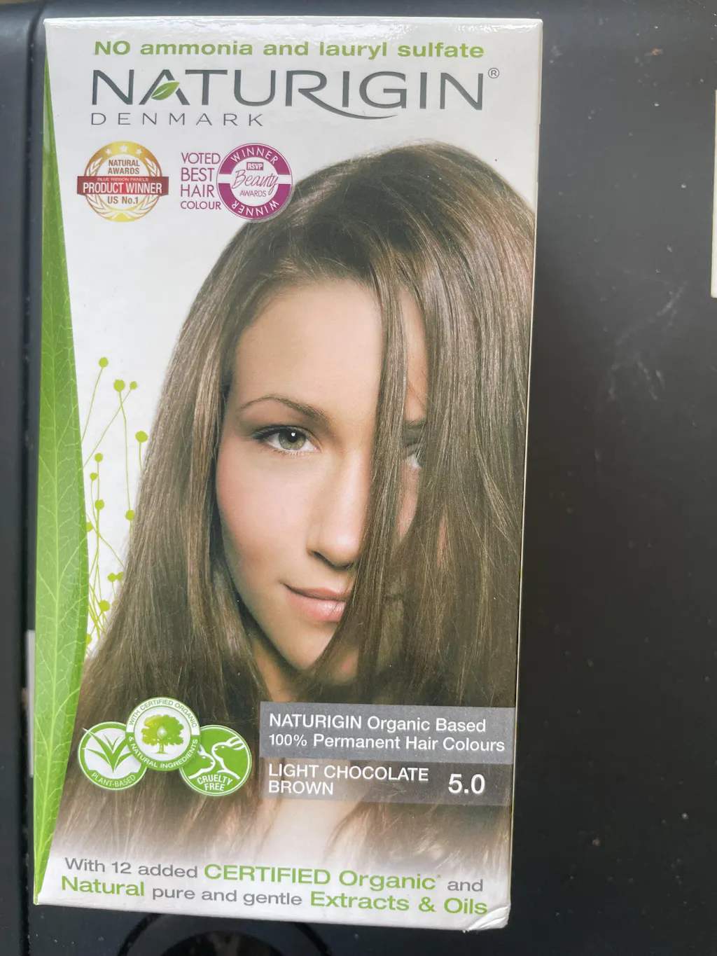 NATURIGIN Light Brown 5.0 gives a rich and natural brown colour. An advanced naturally derived formula, with a unique blend of certified organic lemon and orange essential oils, as well as 10 other pure and gentle organic extracts and natural oils that protects the hair during colouring and adds shine and nourishment to your hair. This hair colour is completely free of ammonia, parabens and SLS, and covers grey hair up to 100%.